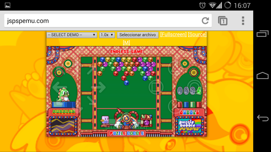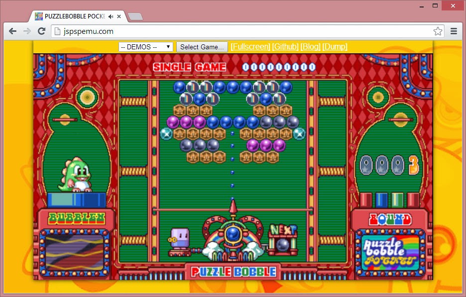 This version, allows to play Puzzle Bobble within modern browsers without plugins. It should work on windows, linux, mac… It now supports saving, audio with atrac3+ and displays bezier curves (still hacky) and should work on mobile (though still a bit slow).