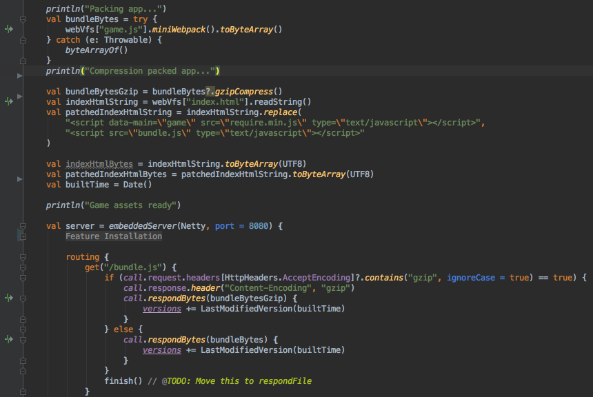 First I checked the JS entrypoint, then searched for all the require(‘module’) in the file to locate all the dependencies of the entrypoint and dependencies. With that graph, I did a topology ordering (a slow buy simple implementation for just a bunch of dependencies). Then I concatenated all the files in memory in a string, generated a bytearray and compressed with gzip level 9 in a bytearray. Then I’m serving one of those bytearrays depending on the Accept header from the client.